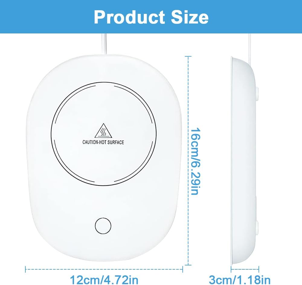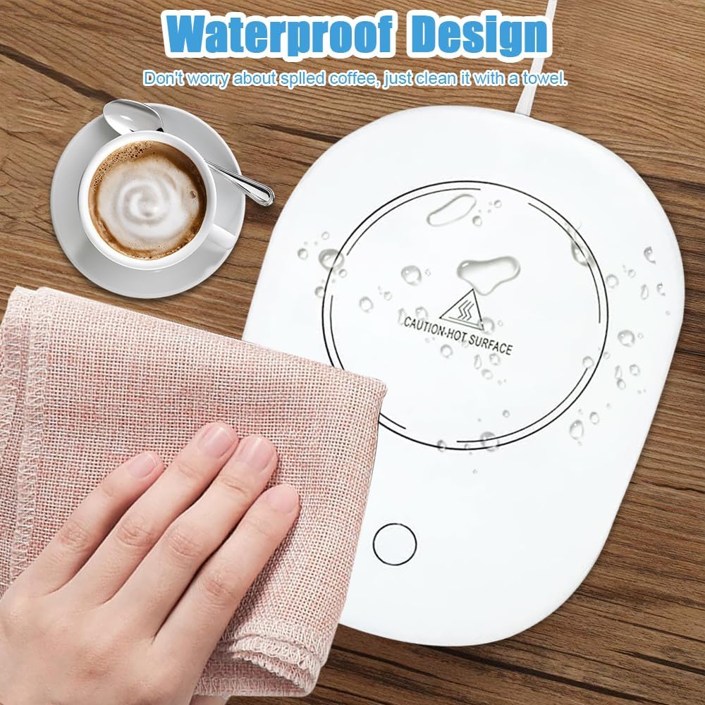 Résistant à l’eau et facile à nettoyer : Ne craignez plus les éclaboussures ! Grâce à sa plaque durcie étanche, ce chauffe-tasses est conçu pour résister à l’humidité et se nettoie simplement avec un chiffon ou une serviette en papier.