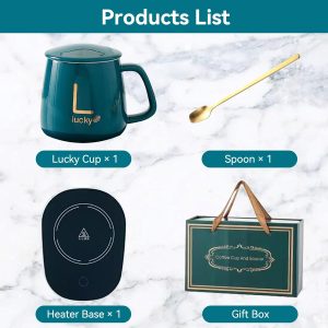 Équipé d’une fonction auto-chauffante, ce chauffe-tasse utilise un système de contrôle de la température qui garantit que votre boisson reste chaude sans risque de surchauffe. De plus, il est livré avec une élégante tasse en céramique d’une capacité de 380 ml, parfaite pour déguster vos breuvages préférés !