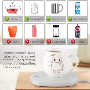 Simplicité d’Utilisation : Placez simplement votre tasse sur le chauffe-tasse, appuyez sur le bouton de démarrage et laissez la magie opérer. Retirez la tasse ou appuyez sur le bouton d’arrêt pour l’éteindre automatiquement.