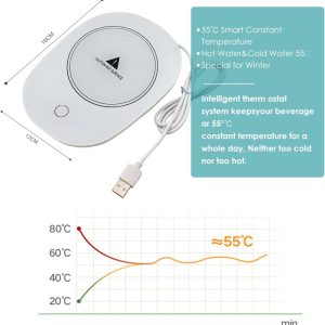 Connexion Facile : Pas besoin de vous soucier d’adaptateurs encombrants. Ce chauffe-tasse se connecte facilement à votre ordinateur, une banque d’alimentation, ou toute autre source d’alimentation via une interface USB. Idéal pour le bureau, à la maison ou même en déplacement !