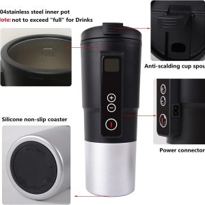 Attention à la Compatibilité : Assurez-vous d’utiliser cette tasse exclusivement avec un système de 12V. Évitez de l’utiliser avec des bus ou camions 24V. Pour une expérience sans souci, utilisez un adaptateur approprié.